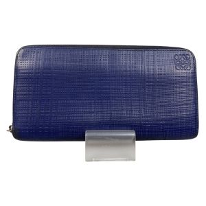 LOEWE ロエベ リネンアナグラムジップラウンドウォレット 長財布 261710 ネイビー Cランク