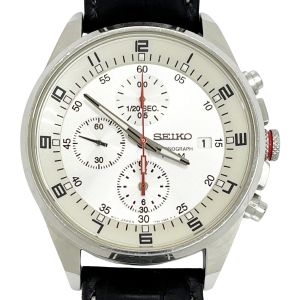 SEIKO セイコー 腕時計 クロノグラフ レザー シルバー メンズ 7T92-0MF0 Cランク