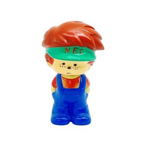 NEC ソフビ人形 NEC坊や 緑サンバイザー 青オーバーオール 昭和レトロ Bランク