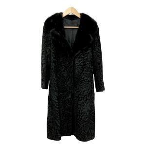 glycine グリシン 毛皮ロングコート 襟元ミンク アウター レディース ミセス ブラック Bランク