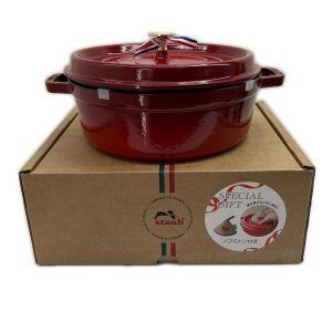STAUB ストウブ 両手鍋 シャローココットラウンド 26cm ミトン付 4L チェリー Sランク