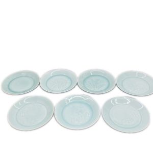 塚本快示 皿7枚セット 青白磁 柄違い 箱ナシ 快山窯 人間国宝 テーブルウェア 和食器 Bランク
