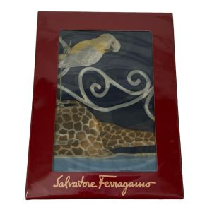 Salvatore Ferragamo サルヴァトーレフェラガモ 鳥 キリン柄 スカーフ ブルー Sランク