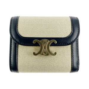 CELINE セリーヌ スモールフラップウォレット トリオンフ 10D782DJ2.01NA ベージュ x ネイビー Aランク