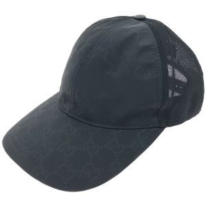 GUCCI グッチ GG ナイロン メッシュ キャップ 6パネル レザーパッチ ロゴ Lサイズ ブラック Bランク