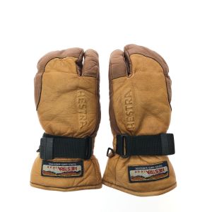HESTRA へストラ ユニセックス スキーグローブ 冬山登山 スリーフィンガー レザー サイズ5 ブラウン Bランク