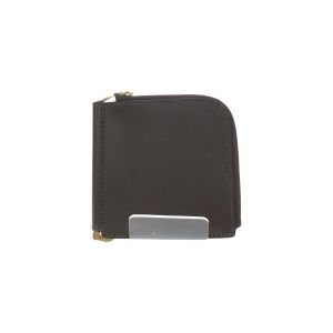 ITAGAKI イタガキ ユニセックス マネークリップ コインケース付 L字ファスナー 札バサミ 本革 ダークブラウン Bランク