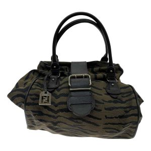FENDI フェンディ ハンドバッグ キャンバス ゼブラ柄 ロゴチャーム付 Bランク