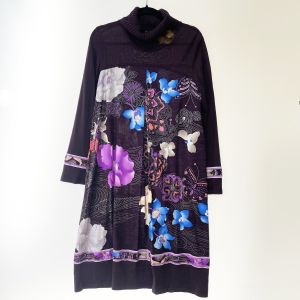 LEONARD レオナール レディース ワンピース 花柄 インナー、ファーブローチ付き サイズLL パープル Bランク