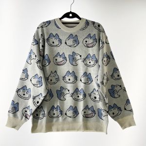 graniph グラニフ レディース ニット 11ぴきのねこ 総柄 SIZE M グレー Aランク