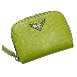 PRADA プラダ ラウンドファスナー財布 コインケース T10047 黄緑 レディース レザー Bランク