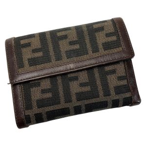 FENDI フェンディ ズッカ ジャガードキャンバス ブラウン 3つ折り財布 メンズ レディース Cランク
