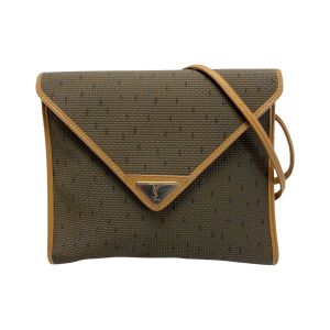 Yves Saint Laurent イブサンローラン カサンドラ YSLロゴプレート ショルダーバッグ ブラウン系 PVC×レザー ヴィンテージ Cランク