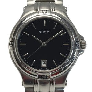 GUCCI グッチ デイト ステンレススチール 9040M ブラック クォーツ メンズ 腕時計 Bランク