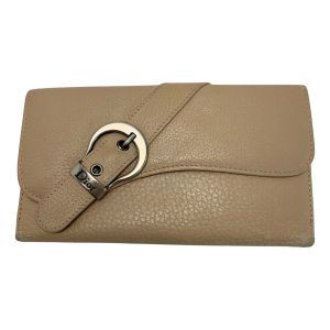 Christian Dior クリスチャンディオール レザー 02-LU-1016 ベージュ 3つ折り長財布 レディース Bランク