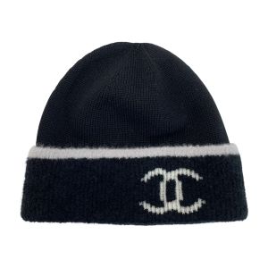 CHANEL シャネル ココマーク ウール×カシミヤ ブラック 帽子 ニット帽 Bランク
