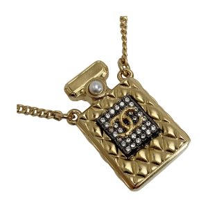 CHANEL シャネル ココマーク 香水ボトルモチーフ ネックレス A21V ゴールド GP ラインストーン フェイクパール パフュームボトル Bランク