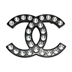 CHANEL シャネル ココマーク ラインストーン ブローチ B21K ブラック レジン Bランク