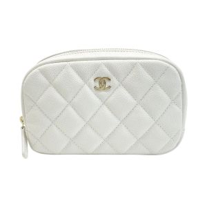CHANEL シャネル ココマーク マトラッセ ポーチ ホワイト キャビアスキン ゴールド金具 Bランク
