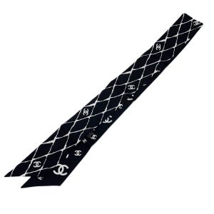 CHANEL シャネル ヘアバンド 細いスカーフ ツイリー ブラック×ホワイト シルク100% Bランク