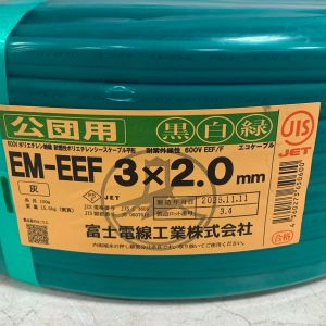 富士電線工業 EM-EEF ケーブル 3×2.0mm 100M 黒白緑 2025.11製造 公団用 Sランク